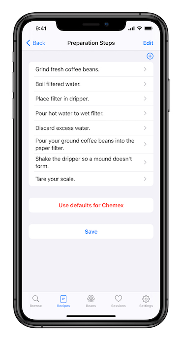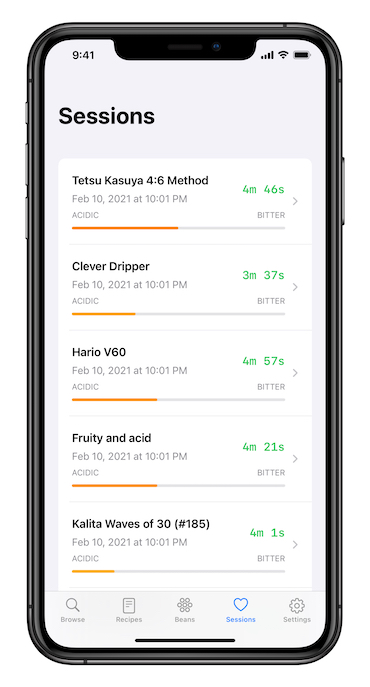 Each brew session is saved. Refine your recipe so you can get closer to that perfect cup.